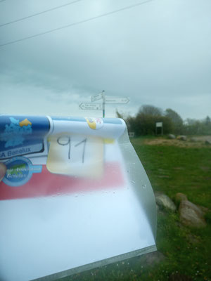 Ach ja…Das hatte ich ja fast vergessen zu erwähnen. Natürlich hat es pünktlich um 05:00 Uhr angefangen zu regnen. Die Außentemperatur beträgt 3 Grad Celsius und der Wind bläst kräftig vom Meer aufs Land. Na dann…Gute Fahrt!