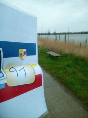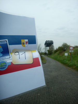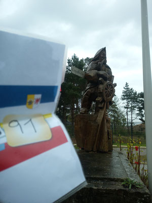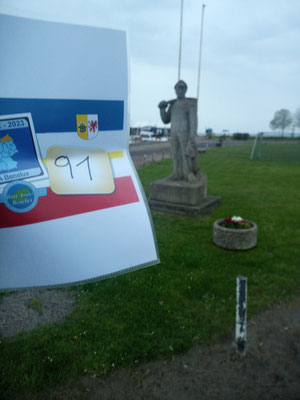 Da auf dem Kreditkartenabrechnungsbeleg die Anschrift der Tankstelle und die Uhrzeit stehen, mache ich schnell mein Foto mit Startnummer und Kilometerstand und mache ich auf den Rückweg nach Kamminke. Schließlich steht dort die erste Figur im Hafen, die es zu fotografieren gilt. Da ich ja am Vorabend mich schon über den genauen Standort der Fischerfigur informiert hatte, ist zumindest der erste Bonuspunkt innerhalb kürzester Zeit im Kasten. Ich muss nur mir meiner Handykamera ein Foto machen und schicke dies mit einer Mail unter Angabe meiner Starternummer, der Nummer der Bonuslocation, meinem Kilometerstand und der Uhrzeit per E-Mail an den Rallyemaster.